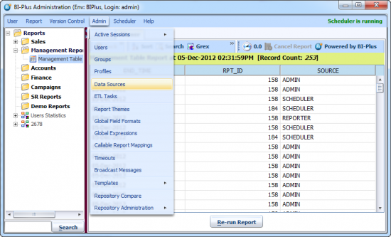Data Sources in BI PLUS enable the connections set up to an external database from BI PLUS server. BI PLUS supports multiple Database drivers using which can connect to a specific database. You need to enter the connection URL, User Name, and Password to make this connection work (Your DBA team will provide you with this information). When the report runs, it first establishes a connection with database and then pulls the data according to your SQL query.