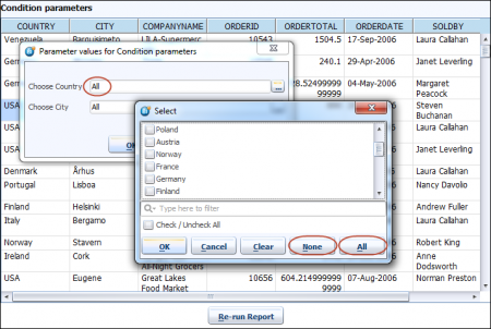 Image displays Show all on optional parameters and Show none on optional parameters features. Clicking on All button will select all parameter values from parameter dialog and will display All as caption in parameter field.