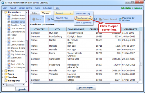 Now once again open the Server Log using Help ⇒ Support ⇒ Show Server Log menu. The log shows that both parameters «P_SHOW_COL» and «P_YEAR» are replaced with respective SQL statements and join types.