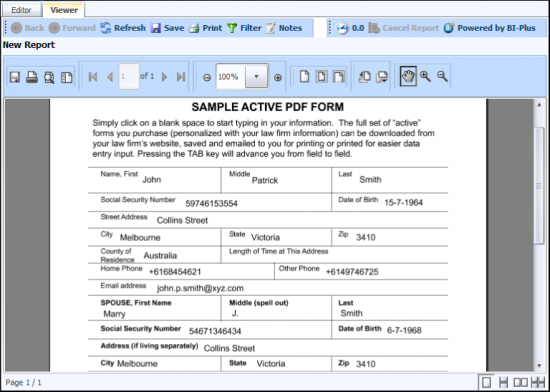 BIPLUS supports PDF form templates, HTML templates, XSL Stylesheets or Word XML templates in which to display the contents of a report. This is mainly where the flexibility is sought and the requirements of the report format cannot be satisfied with the normal default formats that BIPLUS create as built-in formats.