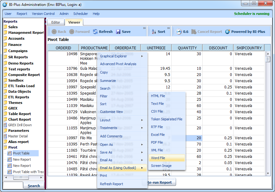 This is very similar to Email As feature, however this opens the Microsoft Outlook instead of Email dialog. Right click inside the report ⇒ Email As (Using Outlook). Select file type of the report to be emailed using outlook.