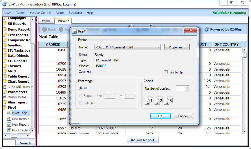 BIPLUS allows user to export their reports either by saving them to a file or by emailing them to an email address. One can also Print the BIPLUS report if he/she needs to. Export in BIPLUS is possible in the following ways: