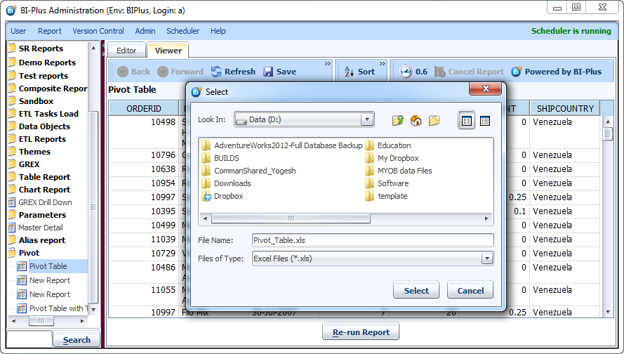 Select dialog will get displayed to select the location where the file to be saved. If you notice, the dialog automatically takes name of report with selected file extension (Pivot_Table.xls in this case). Click on the Select button to save the report.