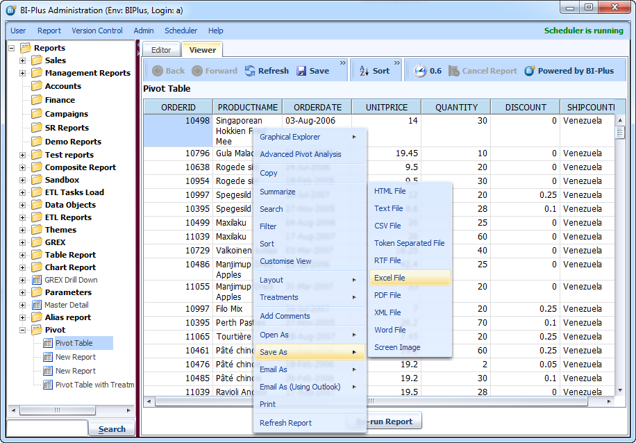 Save As menu feature saves the report on disk in the selected format. The report can be saved as a: