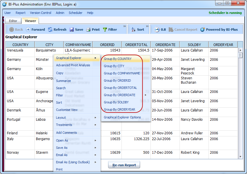Graphical explorer or analytical explorer allows the user to take a spreadsheet-like or matrix report and turn it into useful and powerful information by slicing and dicing the report by any attribute, using any measure and aggregation. E.g. All Orders Matrix Report. Lets start with some basic of GREX.